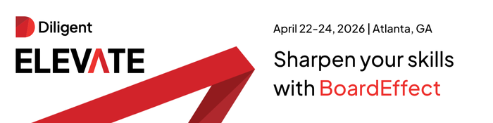 Join us for Diligent Elevate 2026, the premier event for governance, risk and compliance professionals. Discover the latest in AI-powered governance, risk and compliance, connect with industry leaders and sharpen your BoardEffect expertise. Reserve your spot now!