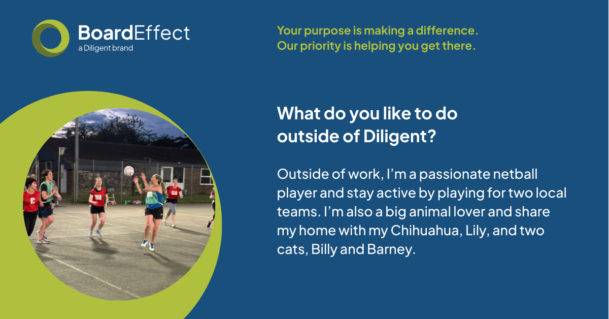 “There is nothing I like more than seeing a client successfully onboarded and witnessing how the use of BoardEffect improves collaboration and effectiveness,” she shares. Helping mission-driven organizations save time, streamline processes, and feel confident using the platform is what fuels her day-to-day work.