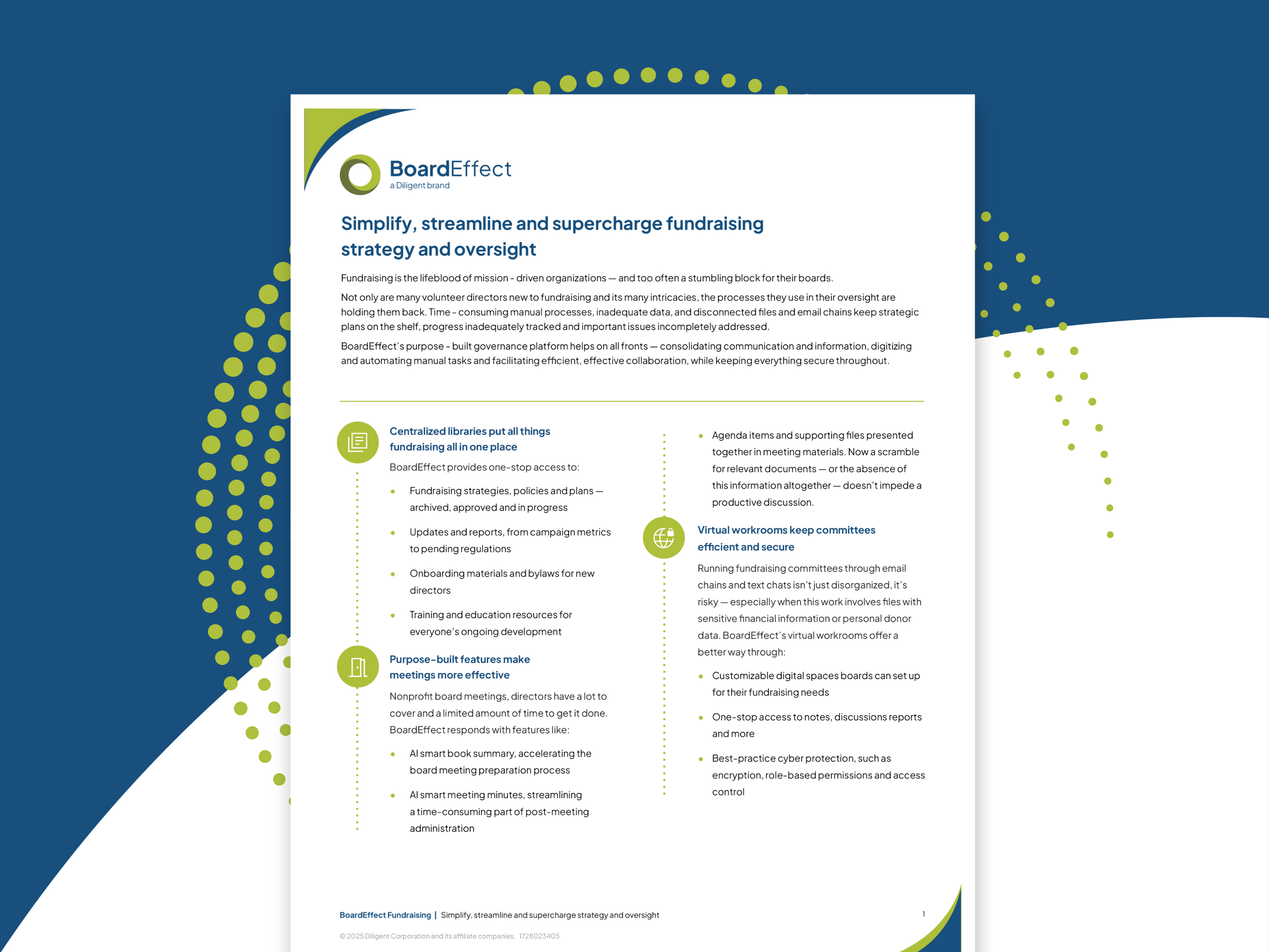Put this knowledge to work today. Reach out today to learn how BoardEffect can strengthen your board’s oversight — and your organization’s fundraising success.