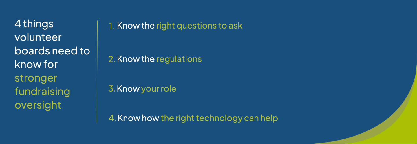 In fact, our blog on fundraising regulations around the world is one of our longest. For boards of mission-driven organizations, it’s more important than ever to stay up to date on the latest regulations covering fundraising for your jurisdiction and sector, especially if your work involves healthcare and financial services.